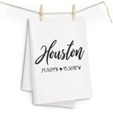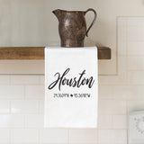 City, State, Coordinates Tea Towel - Personalized Kitchen Towel