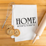 "Home" Custom Coordinates Tea Towel - Personalized Kitchen Towel