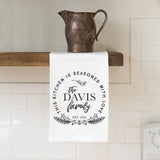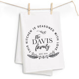 "Seasoned with Love" Family Name Tea Towel - Personalized Kitchen Towel