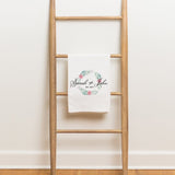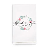 Couples Towel Tea Towel with Floral Wreath - Personalized Kitchen Towel